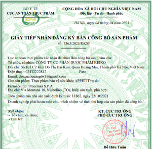 Appetit+ là thực phẩm thuần chay giải quyết một cách toàn diện vấn đề sức khoẻ cho cả trẻ em và người lớn. Đây là dòng sản phẩm đến từ thương hiệu nổi tiếng về dinh dưỡng và chăm sóc sức khoẻ của Ý. Appetit+ được điều chế dạng siro, với các chất điều vị ngọt chua cực kì dễ sử dụng đối với trẻ nhỏ giúp hết biếng ăn, ăn ngon hơn, thúc đẩy sự phát triển của bé. Hiện nay, appetit + rất được các chuyên gia dinh dưỡng trẻ nhỏ ưa chuộng và khuyên dùng, là một trong những sản phẩm bán chạy hàng đầu ở các nước phát triển.